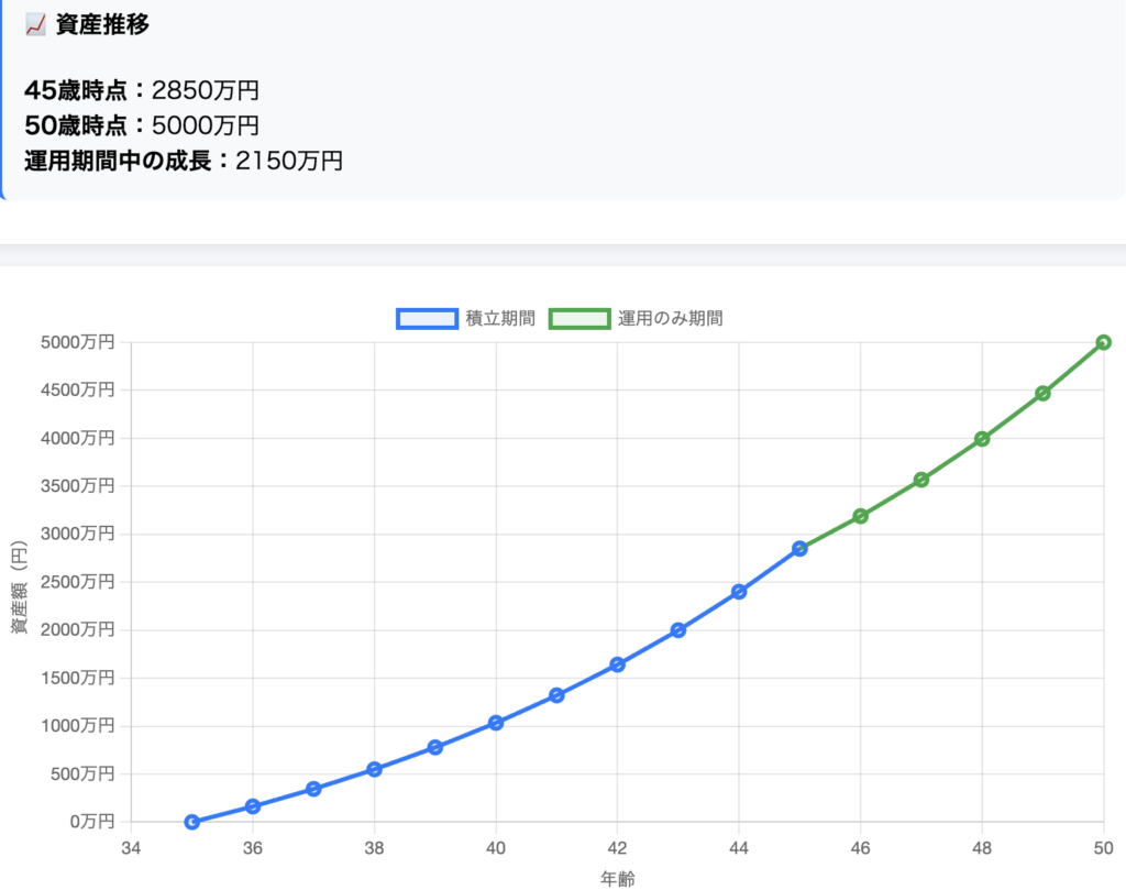 参考例2:45歳で積立辞めて50歳で資産5000万円