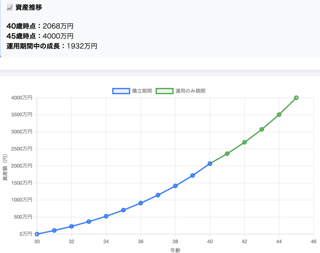 参考例3:40歳で積立辞めて45歳で資産4000万円