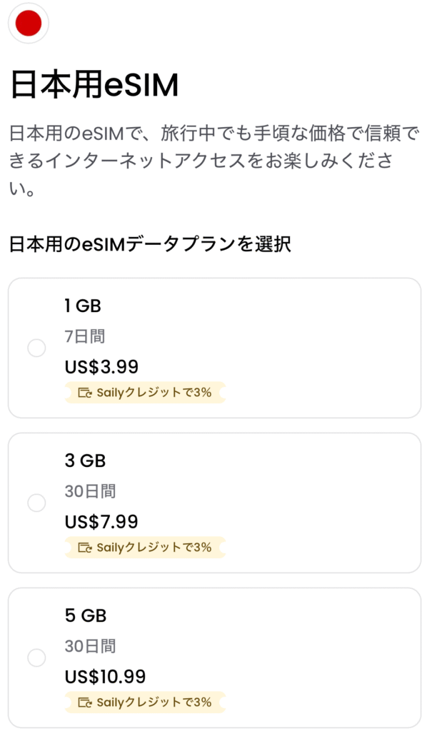 また、Sailyは日本向けのeSIMも提供しているので、海外の知人がインバウンドで遊びにくる際にもオススメです。