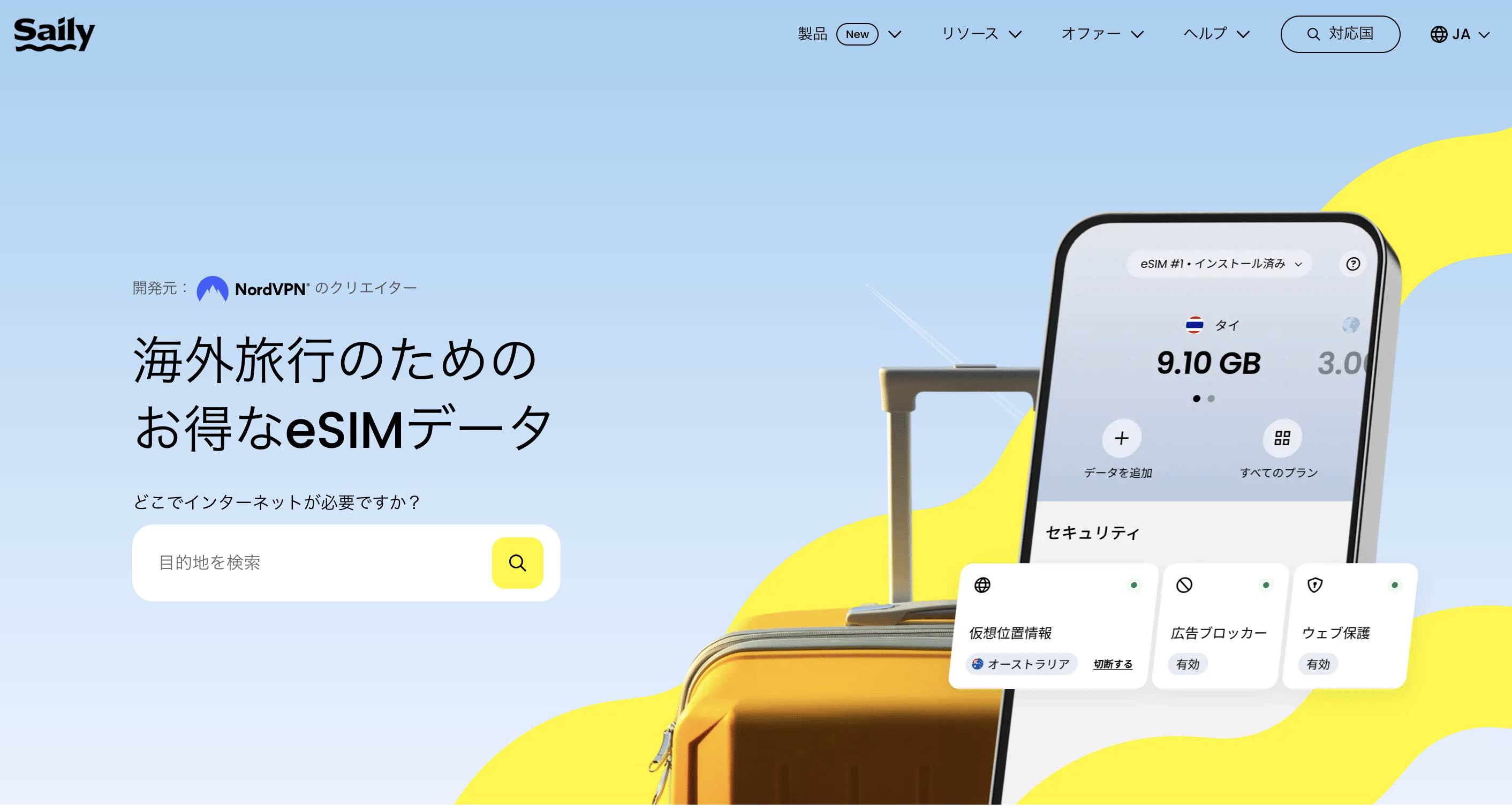 Sailyは世界トップクラスのVPNサービスで有名なNordVPNが開発している海外旅行向けのeSIMサービスです。