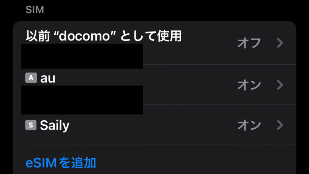 eSIMのインストール&アクティベートが完了すると下画像のようにSIMが追加されます。