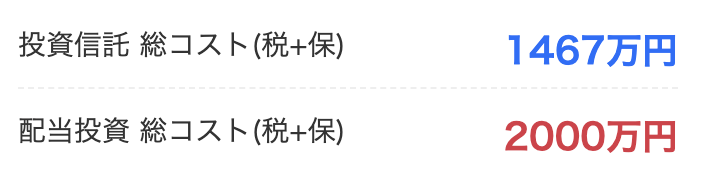 そこで、次は現在の税制で配当投資と投資信託で同じ手取り額になるようにシミュレーションした結果も見ておきます。