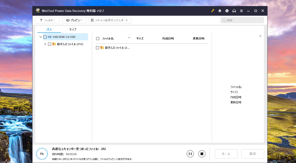 ちなみにスキャン中であっても削除されたファイルや失われたデータが次々と検出されていきます。