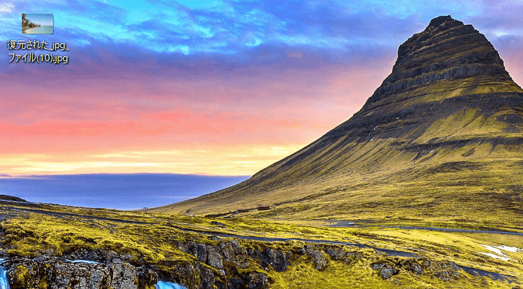 ちなみに今回復元したファイルは保存先をデスクトップにしたので、ちゃんとデスクトップ上に復元されています。