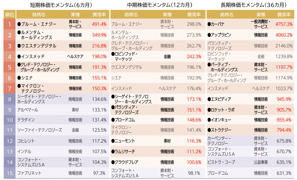 └ 長期モメンタム(36ヶ月):上位7銘柄