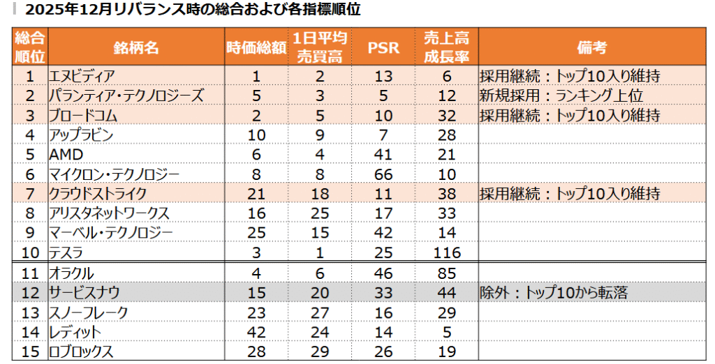 2025年12月のリバランスでServiceNowの代わりに採用されたのがPalantirです。