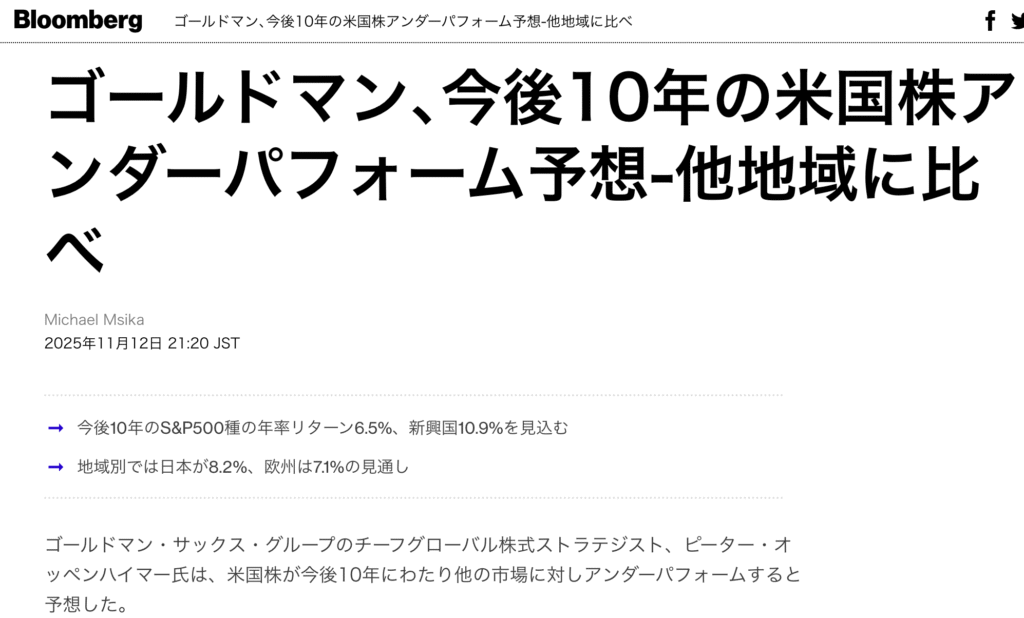 実際にAppleの元最高財務責任者であり、現在はゴールドマンサックスで働いているピーター・オッペンハイマー氏も今後10年は米国株が他の地域よりも不調になると発言しています。