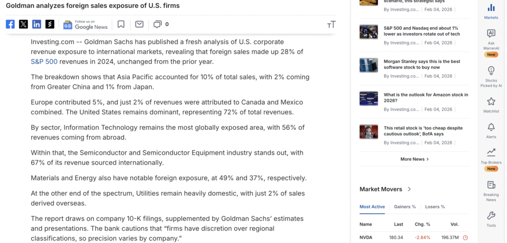 確かにAppleやNVIDIA、MicrosoftなどS&P500の上位を占めるビッグテック企業は海外売上比率が50%以上あります。