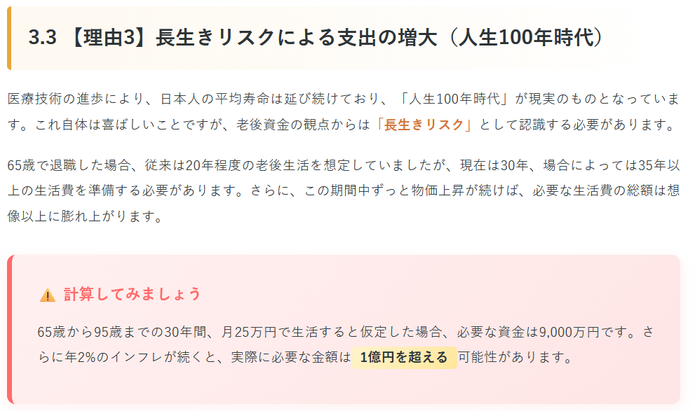 3.3 【理由3】長生きリスクによる支出の増大(人生100年時代)